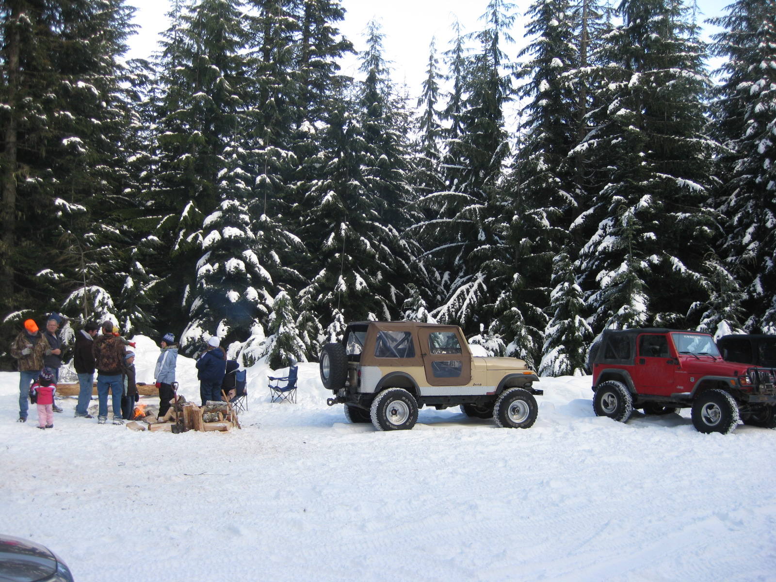 To access the Tonga Ridge trailhead, we parked with a murder of Jeeps (surely a group of them is the same as for crows, no?) who were intent on “breaking trail.” Apparently, this is the thing to do if you have Jeeps and beer and nothing better to do. At least ten four-bys with nubby tires and winches, roll bars and off-road seat belts were parked huddled, waiting patiently like hunting dogs, ready to plow, get stuck and tow each other out. I swear saliva dripped from the bumper of the trucks–or were those icicles?