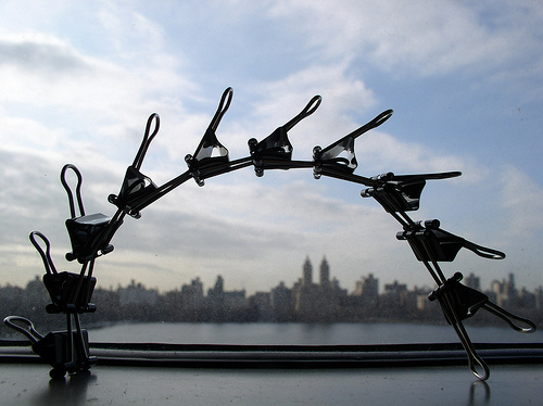 A binder clip to cinch together all those escapee half empty nut bags in the bottom of the freezer. A binder clip to hold open the cookbook page. One to hold my stirring spoon off the counter; two to rest my laptop on. One to clamp down my Tom’s tube. A solution–finally–to the damn wet brillo pad mess: a binder clip hanger! I’m going to hang one from my headboard to hold my phone changer tail and here’s a tip for using binder clips to slip on your duvet cover.