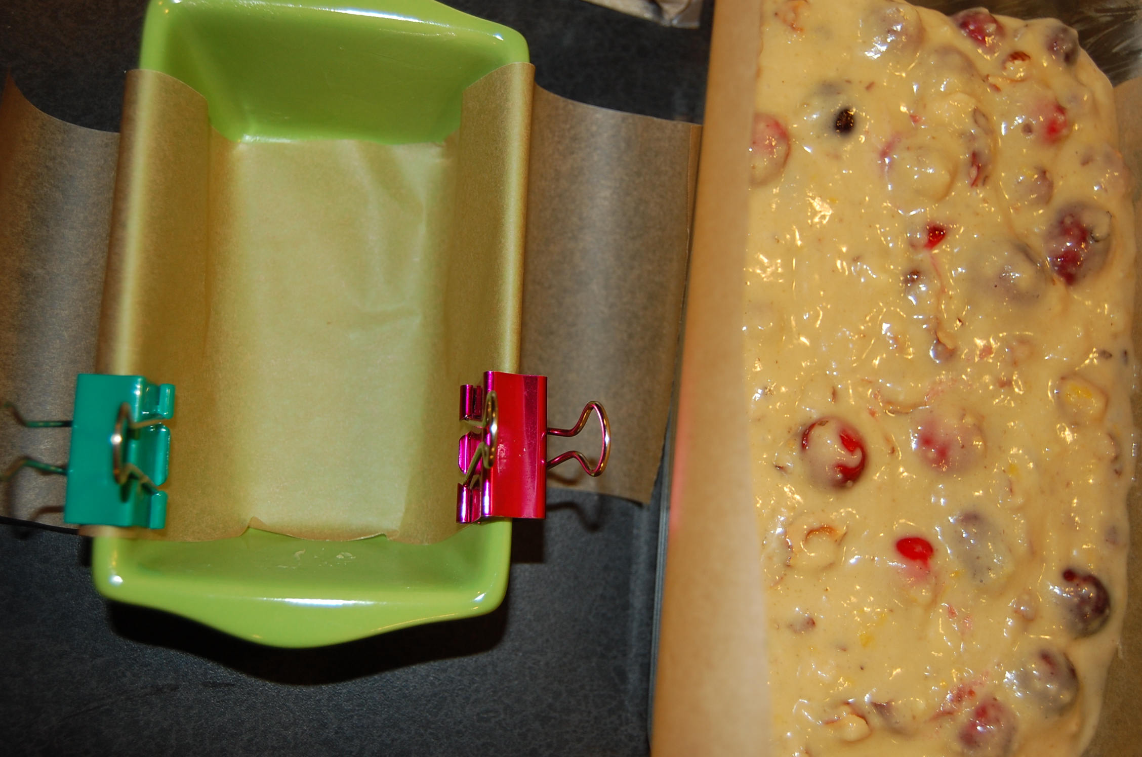 Lest you think I condemn my husband’s ingenuity, I have taken to seeing the binder clip in a whole new light. Sure, we’ve always used them in the kitchen for chip clips, but just last night, when the parchment paper wouldn’t stay down in the loaf pans–voila! A binder clip on each side’ll do’er.