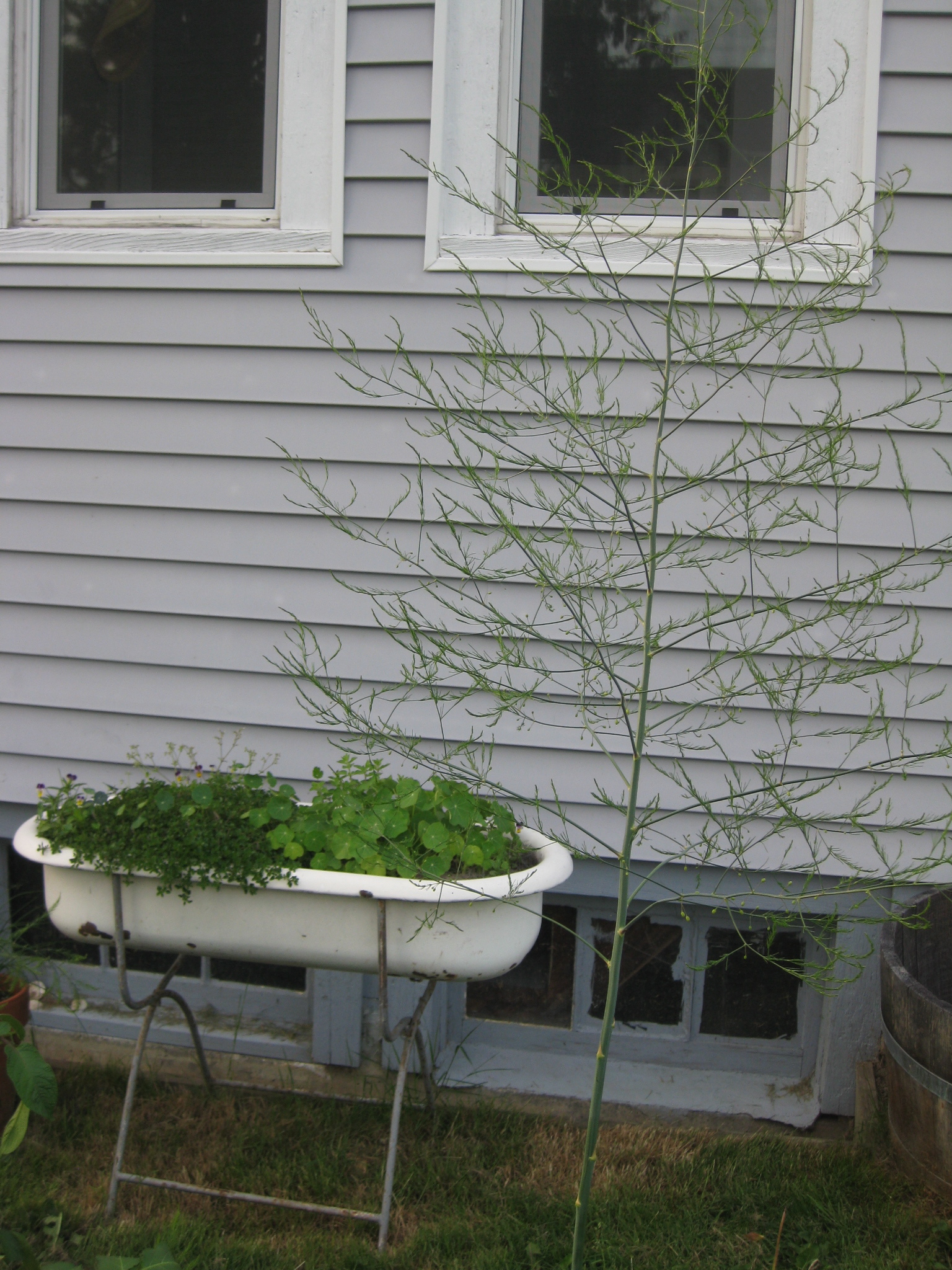 N, who has made up for every bad date and heart-break of my life, and this damn asparagus patch, which I may get to nibble from when we have the first Hispanic or woman president. In the meantime, the trees flop and flail and make me giggle at their wooziness, as if they’ve had too much bourbon, and just had to lie down.