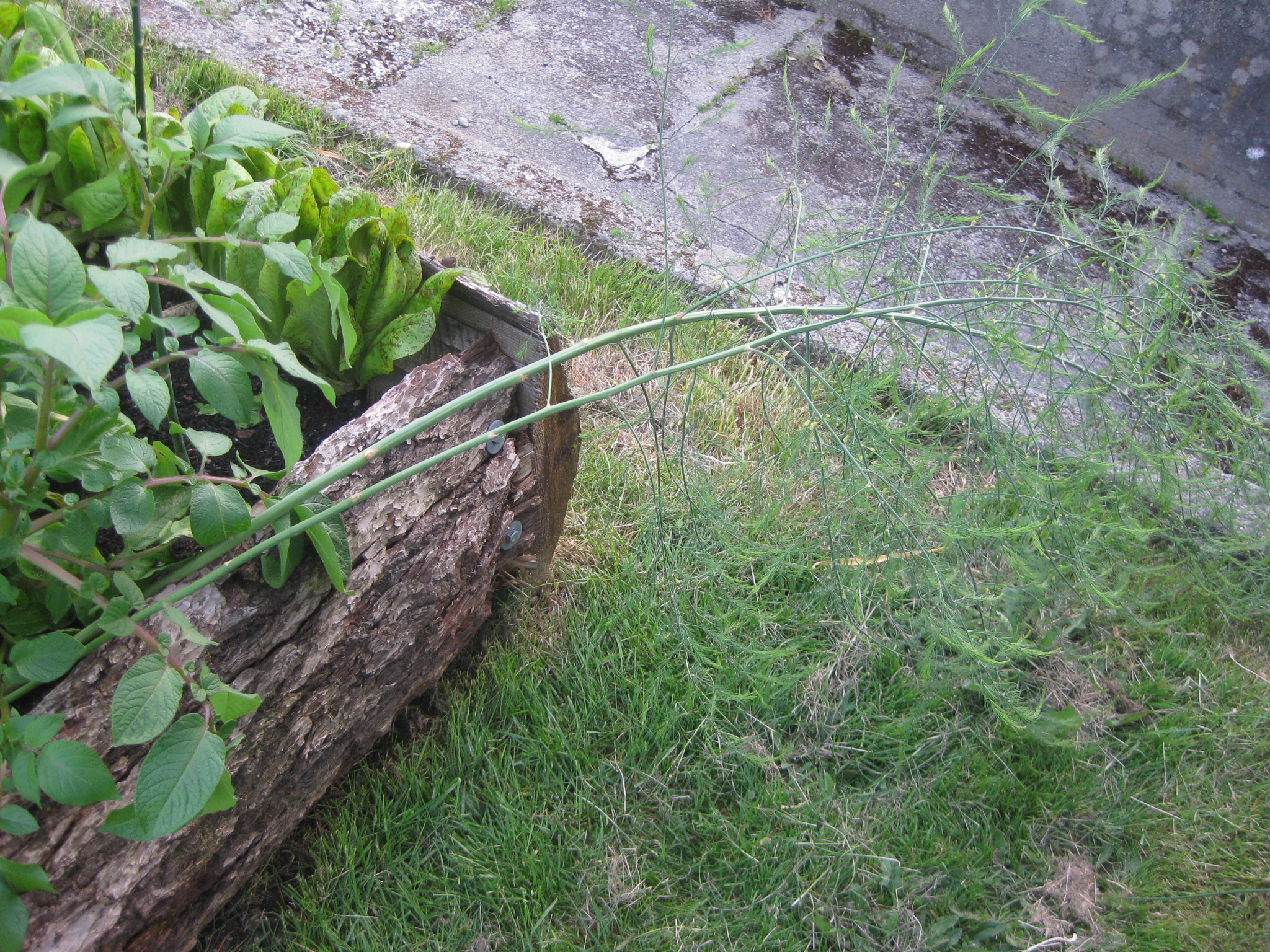 And here’s another neophyte gardening secret of mine. See that pole the beans will run up? Yes, well, it’s part of my collection. My horde-shit-till-you-can-use-it-in-the-garden collection. It is VERY handy, and N only complains about the piles of junk every once in a while. Let me show you how I’ve used, nay, upcycled all this crap. Cause I’m nothing if not inventive.